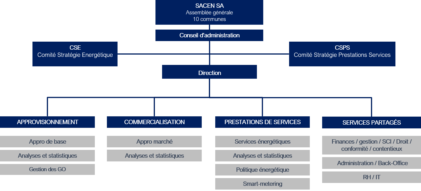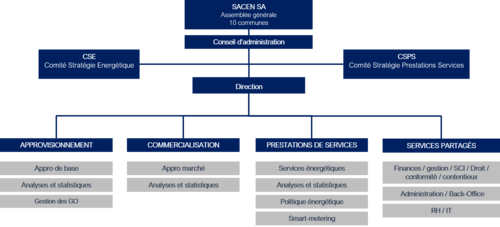 La société est détenue à 100% par les communes, ce qui lui assure une indépendance totale de tous les acteurs énergétiques. Grâce à ce positionnement, SACEN SA est complètement libre lorsqu’il s’agit de développer de nouveaux produits et services. Le seul principe conducteur est la conformité aux objectifs de protection du climat en minimisant l’empreinte carbone.